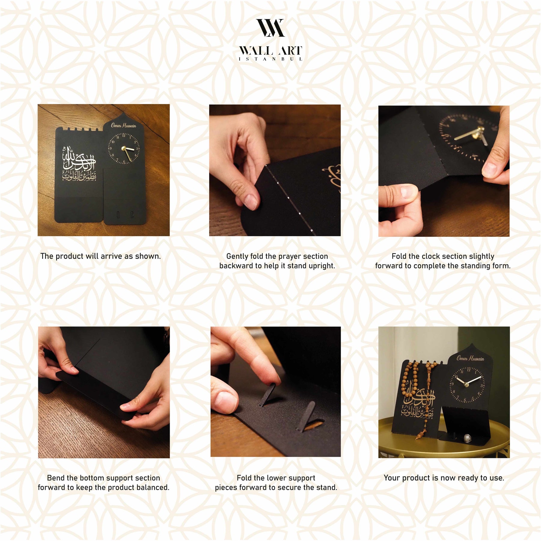 Tesbihat - Kişiye Özel Metal İslami Masa Saati - WAMH215