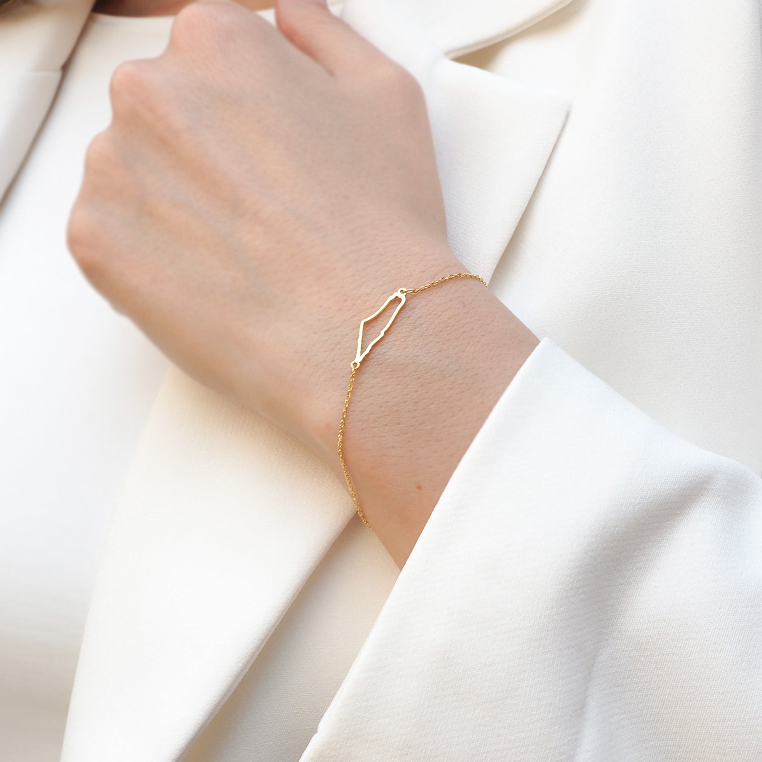Filistin Haritası Bileklik, altın kaplama tasarımıyla sadelik ve anlamı bir araya getirir.