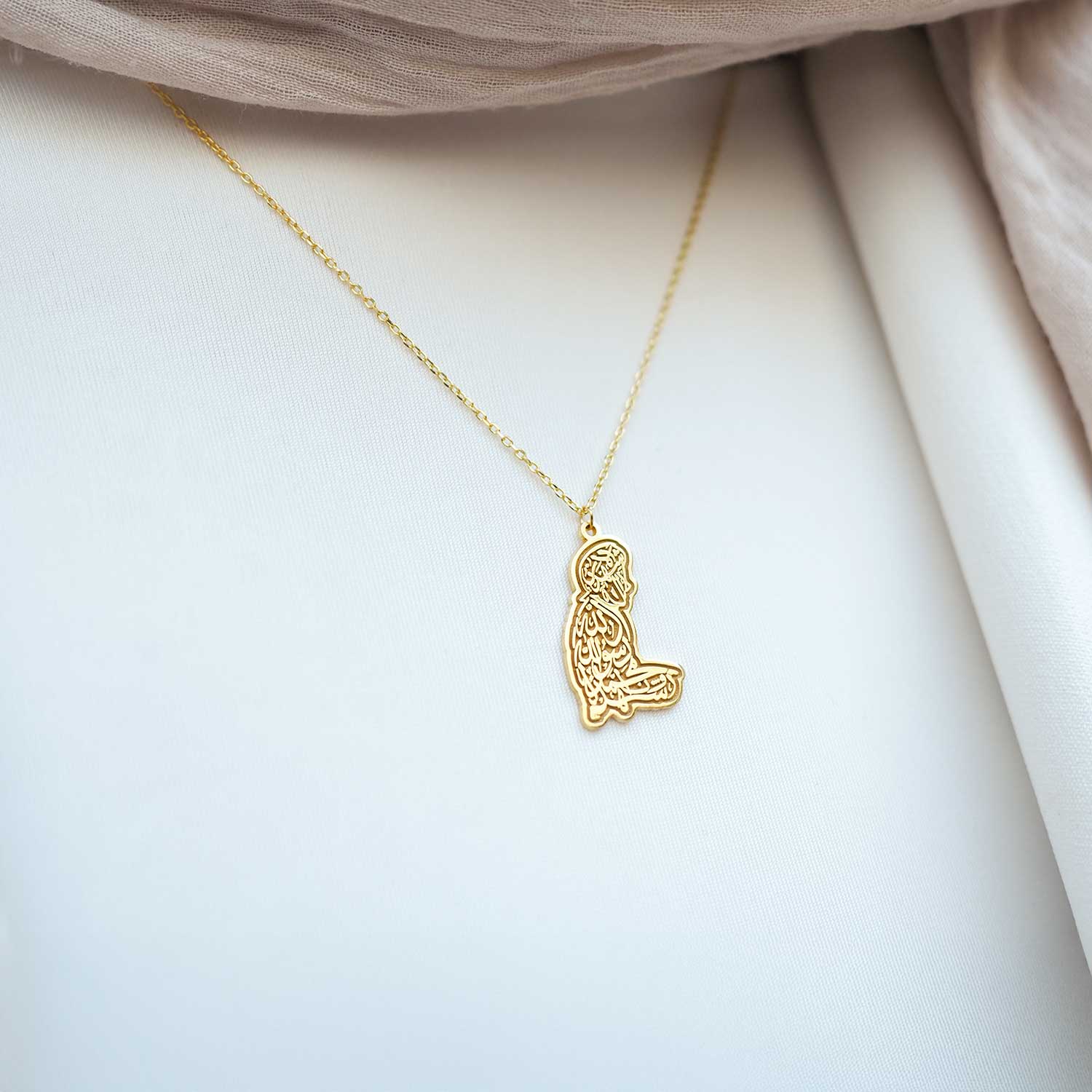 Kelime-i Şehadet Yazılı Kolye, altın kaplama tasarımıyla maneviyatı ve zarafeti bir araya getirir.