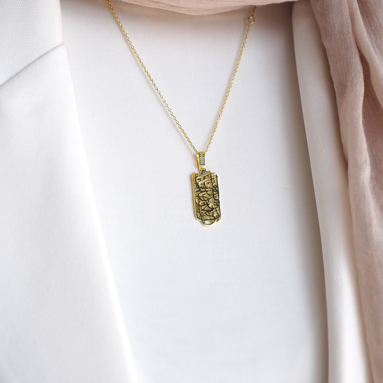 Fetih Suresi Yazılı Kolye, inançla gelen başarı ve huzuru simgeler.
