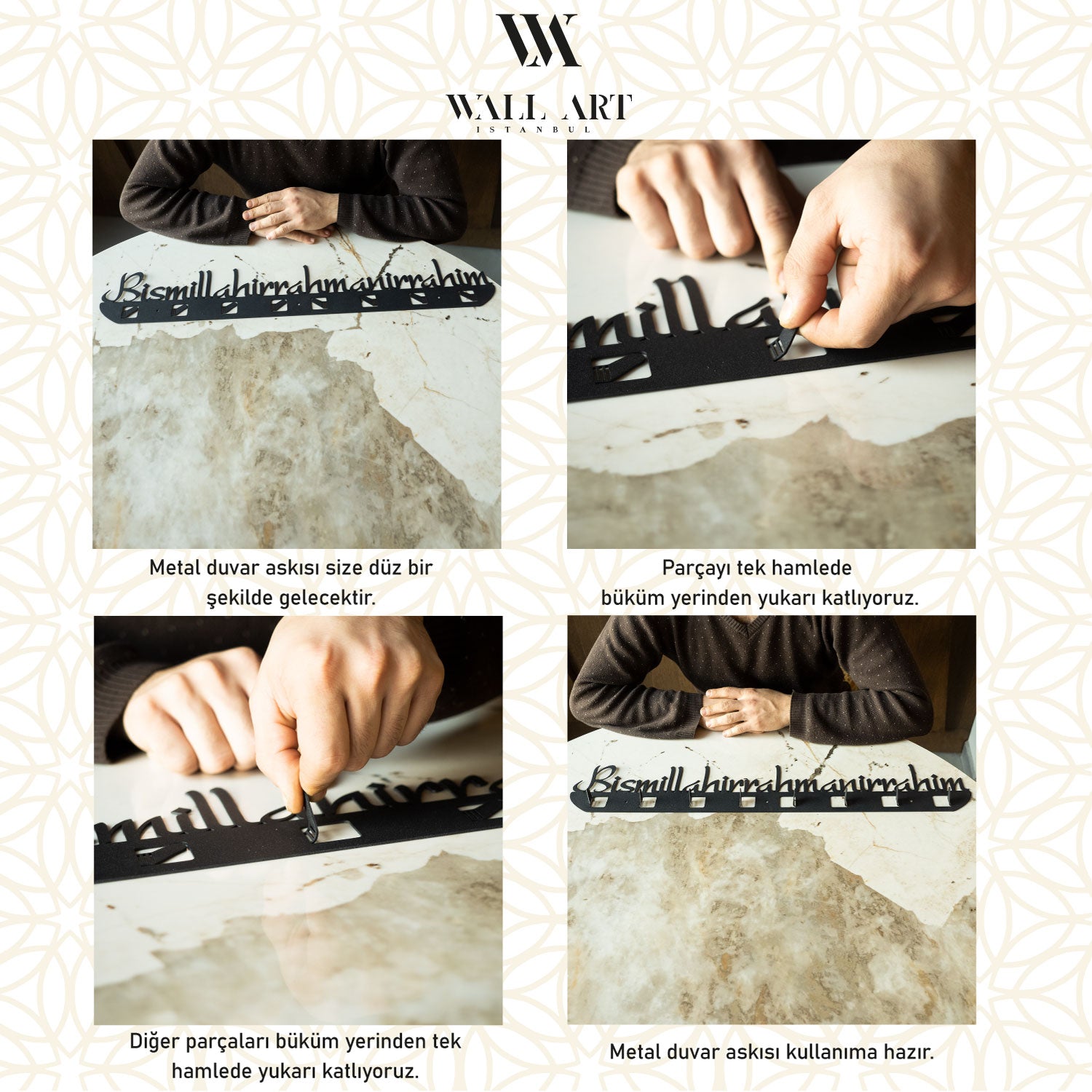 FIRSAT - Besmele Yazılı Metal Duvar Askılığı - WAMH092