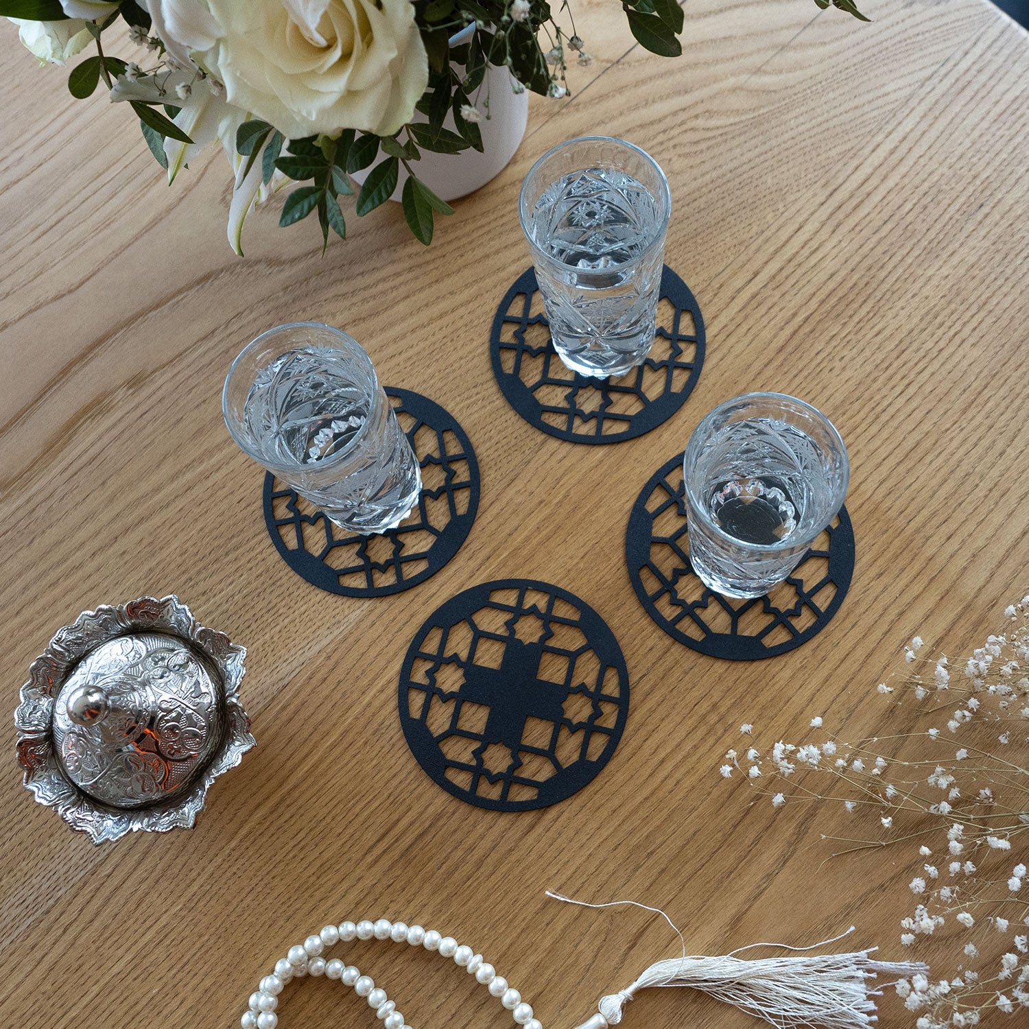 FIRSAT - İslami Motifli Metal Bardak Altlığı (4'lü Set) - WAMH064