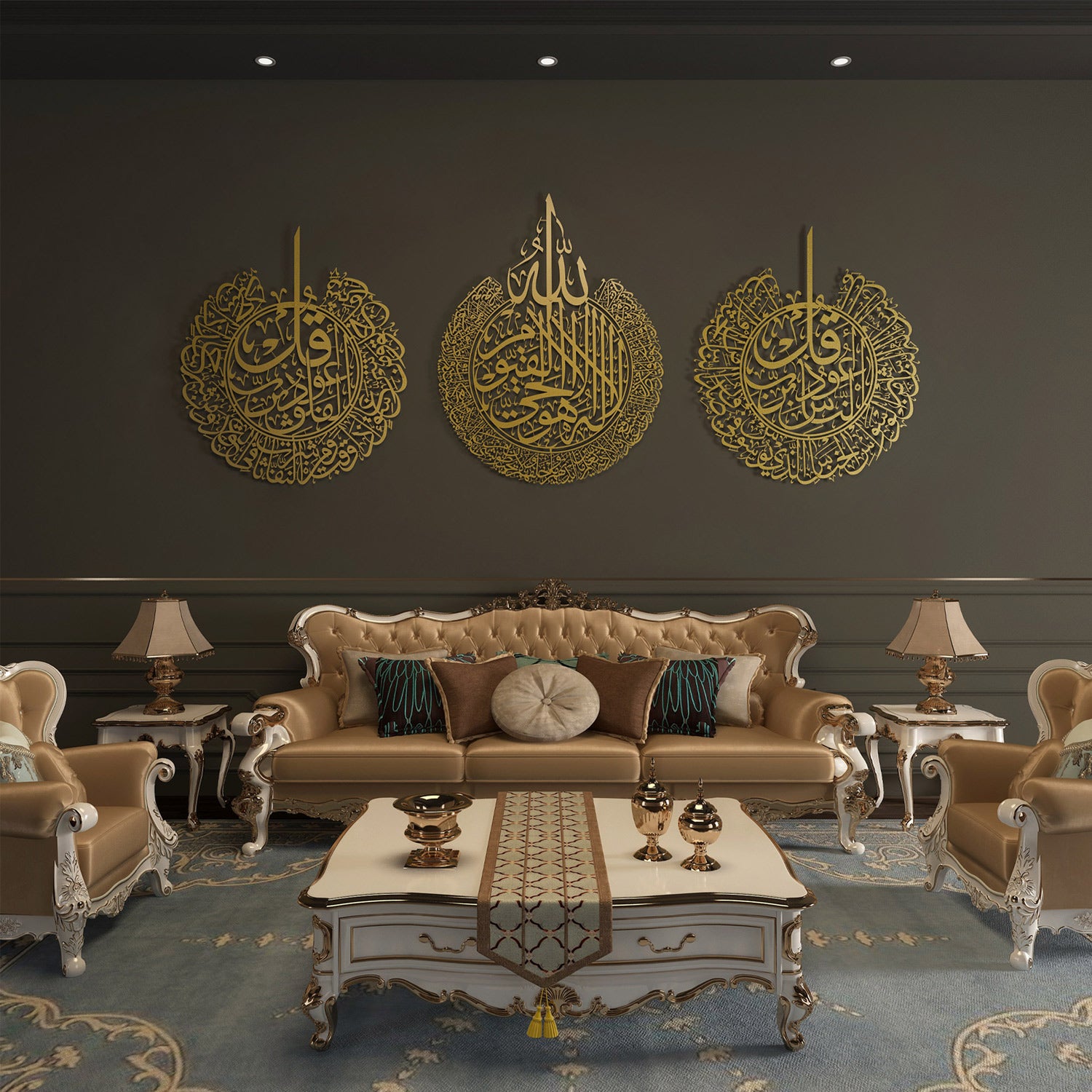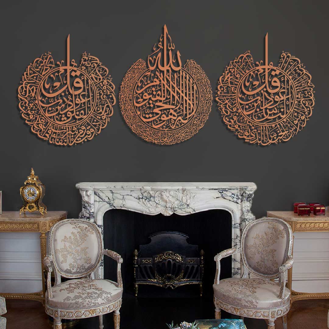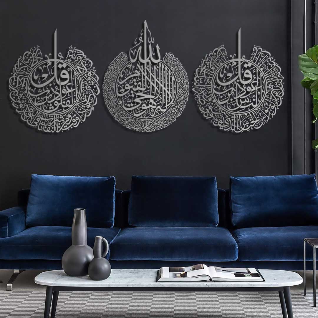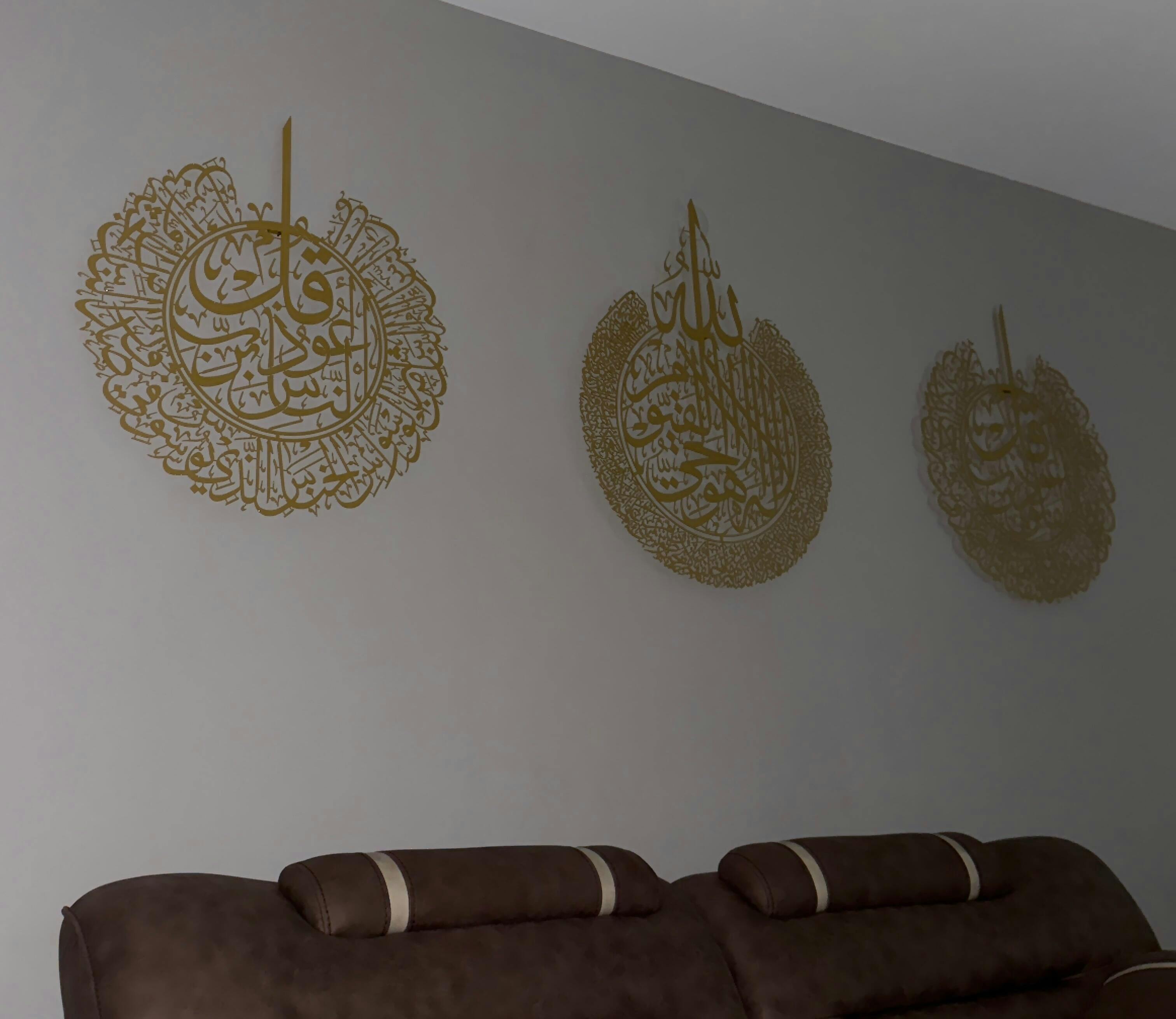 Ayetel Kürsi, Felak ve Nas Suresi Metal Duvar Tablo Seti (3 Parça) - WAM079