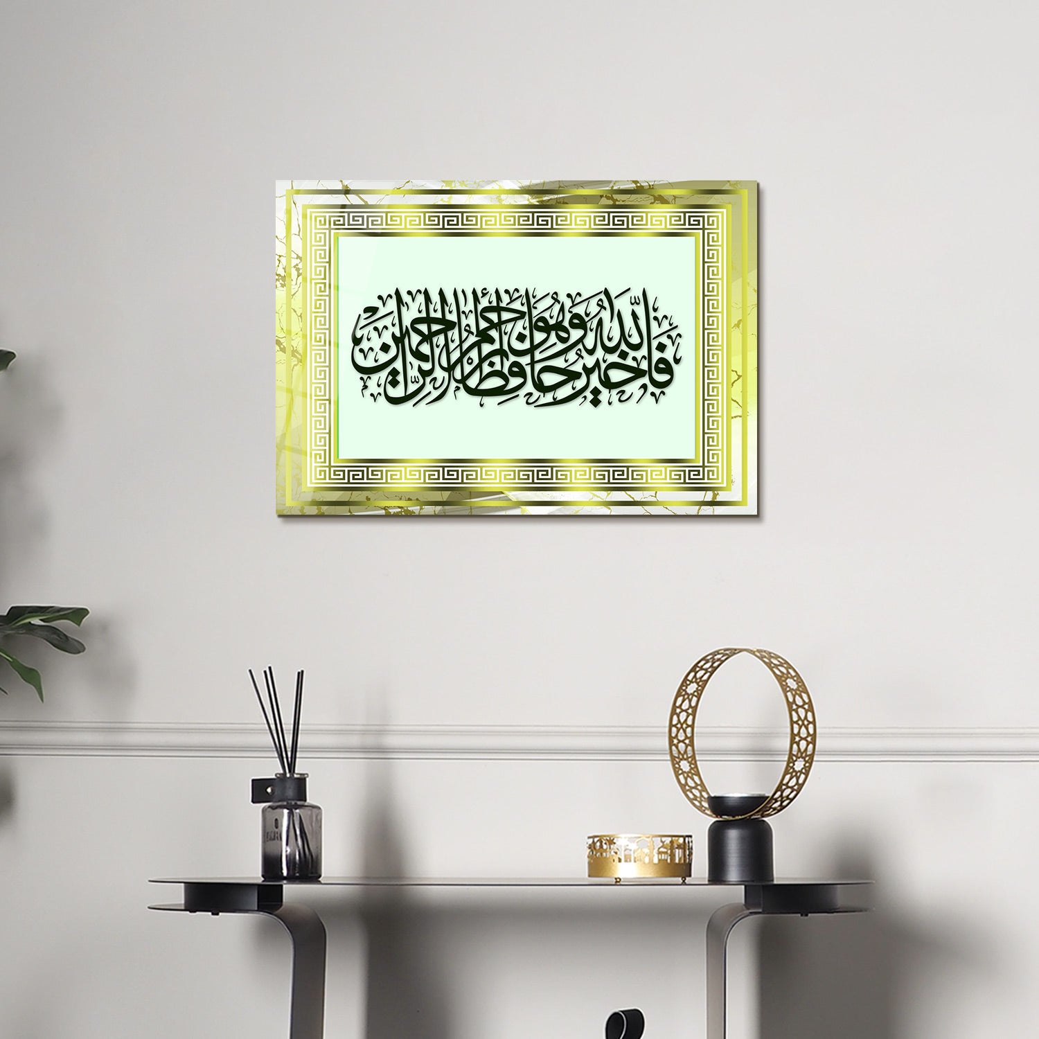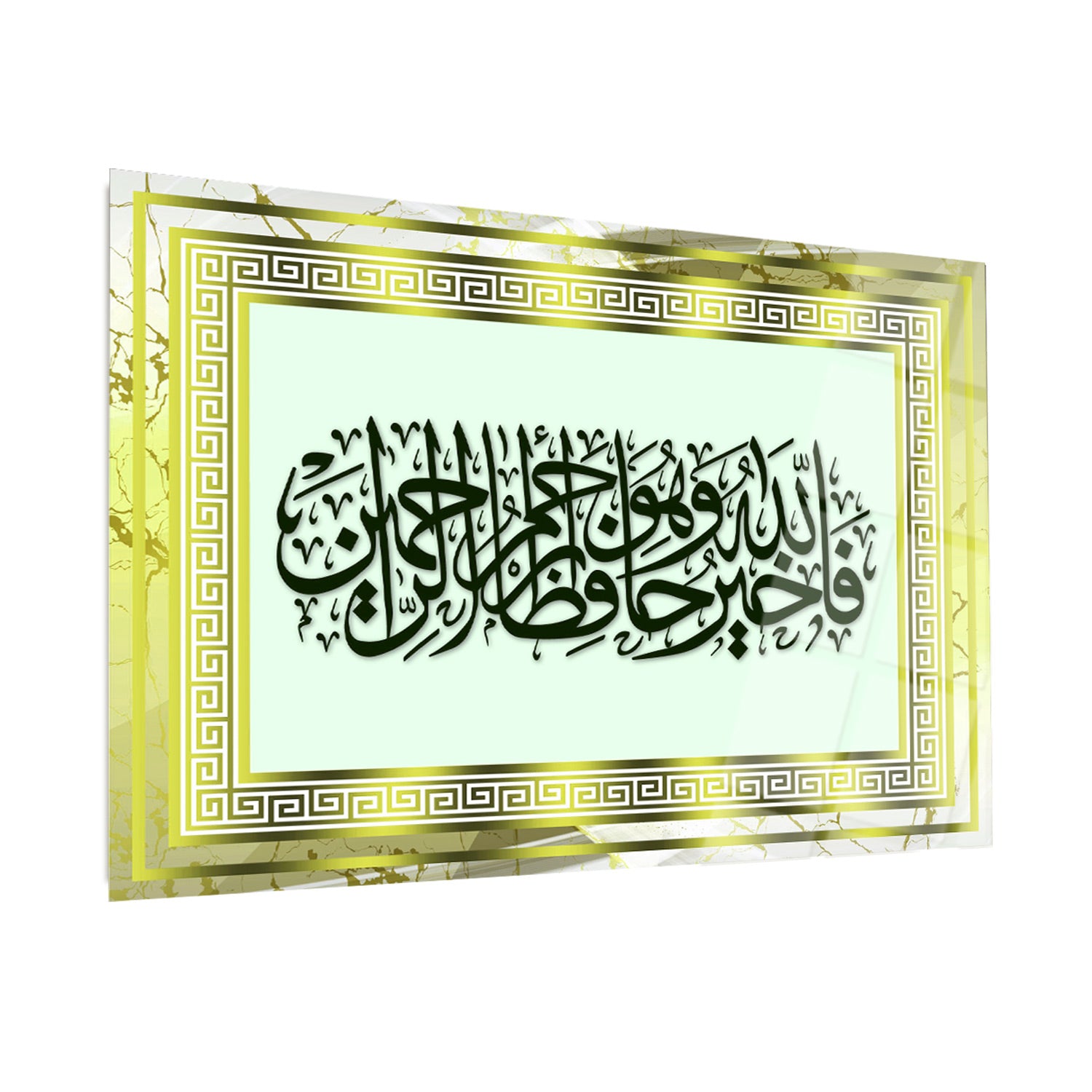 "Allah en iyi koruyandır ve O, merhametlilerin en merhametlisidir." Yusuf Suresi 64. Ayet Yazılı Cam Tablo - WTC009