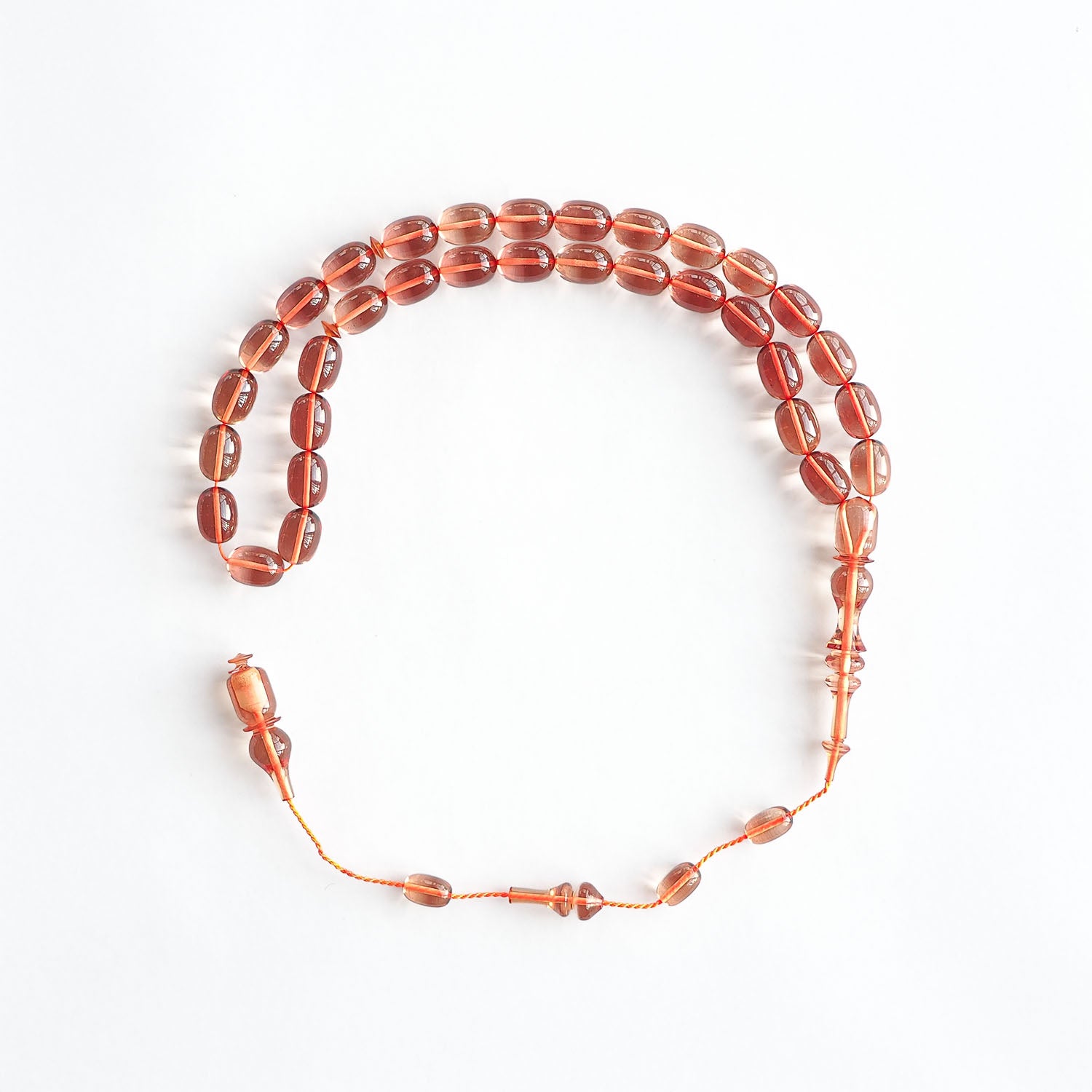 Ateş Kehribar Yumurta Kesim Tesbih - WATD222