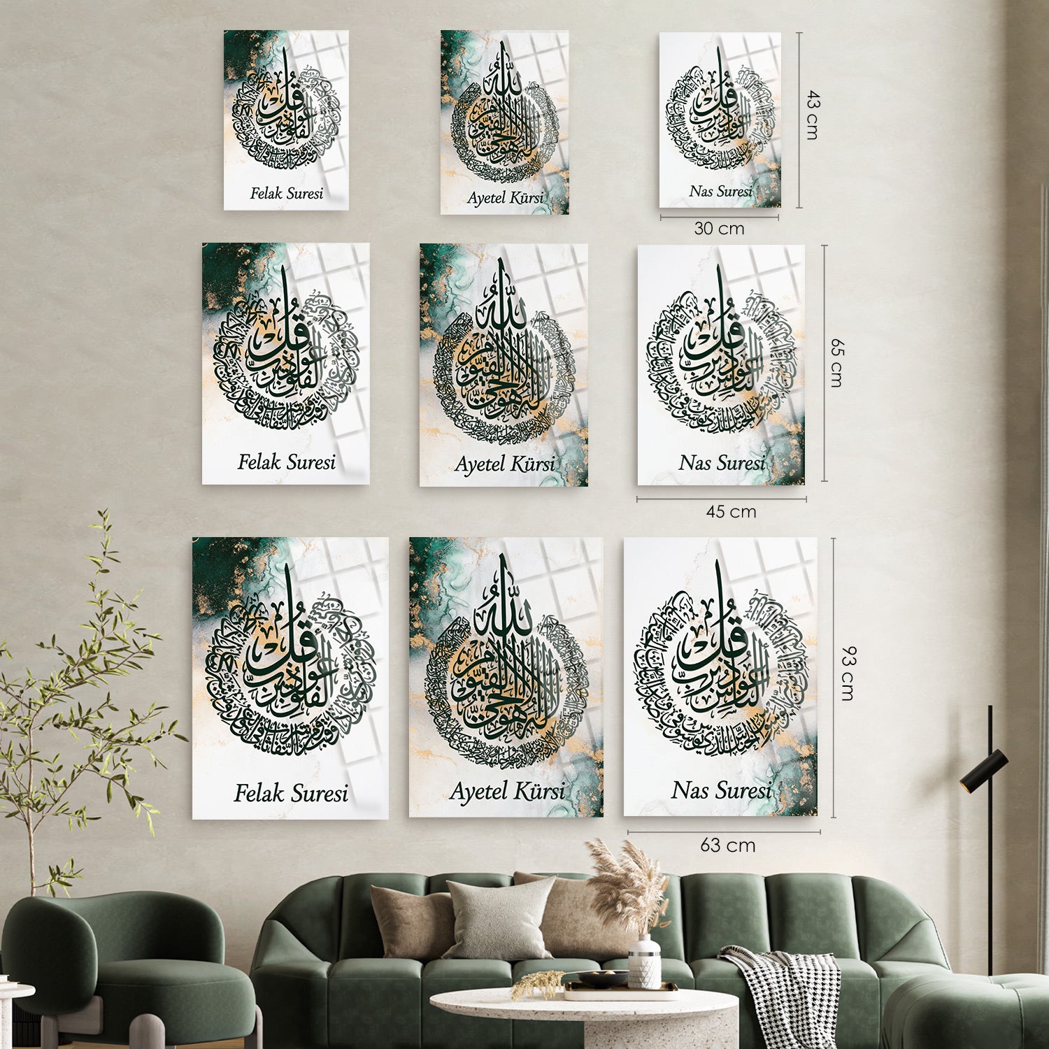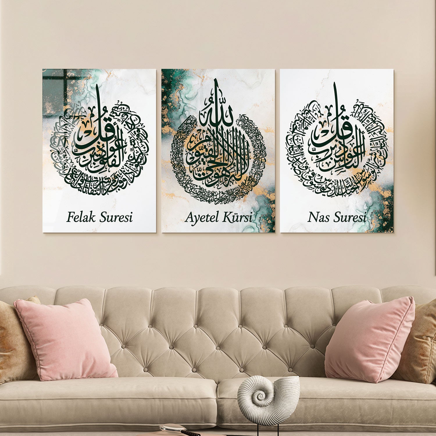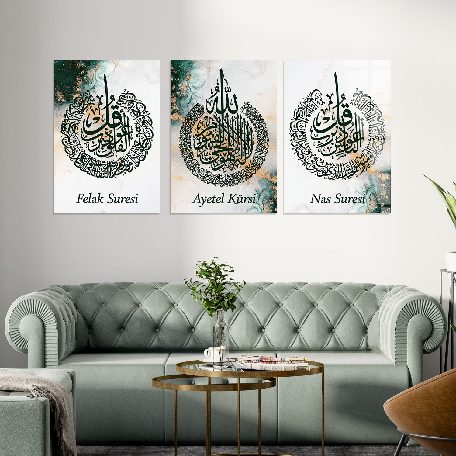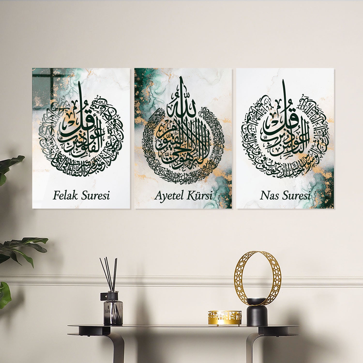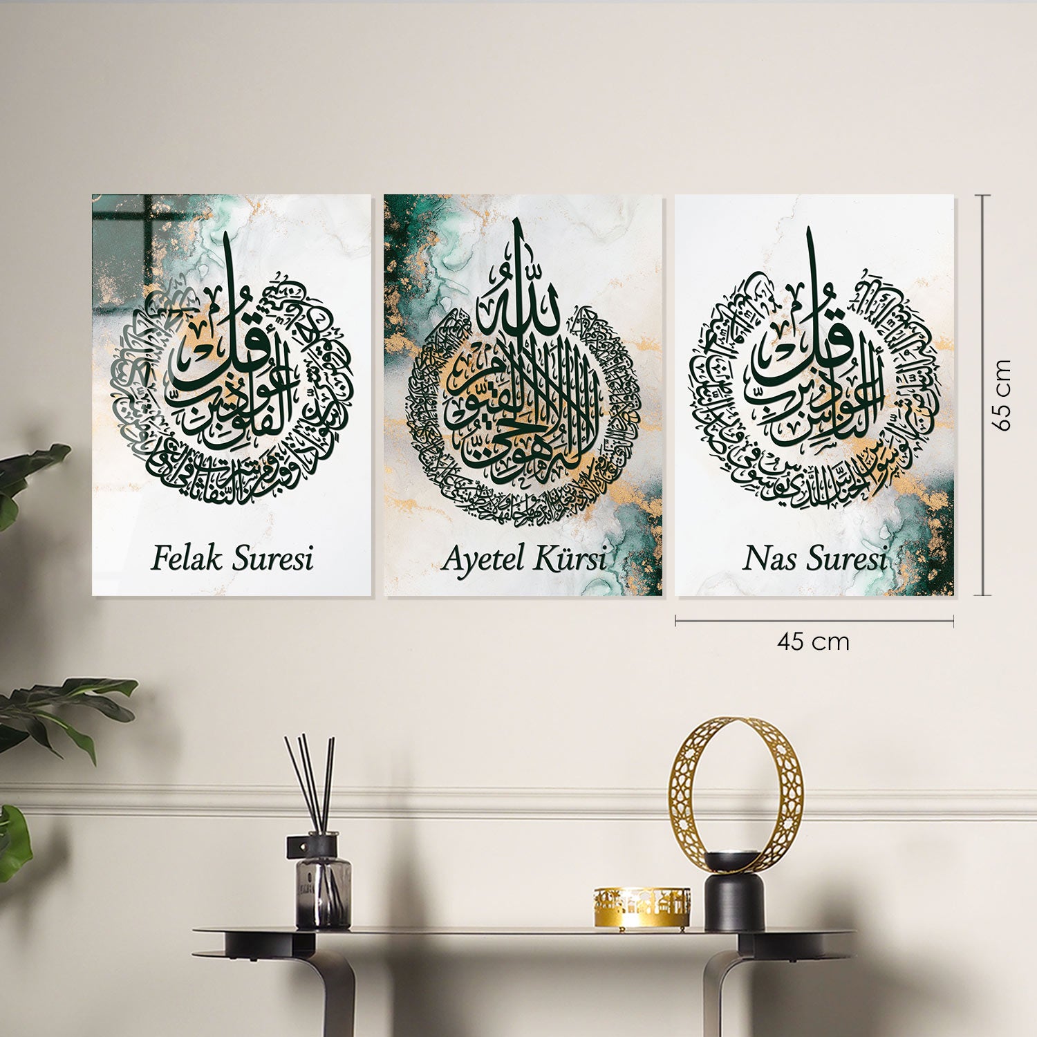 Ayetel Kürsi, Felak ve Nas Suresi Cam Duvar Tablo Seti (3 Parça)- WTC007