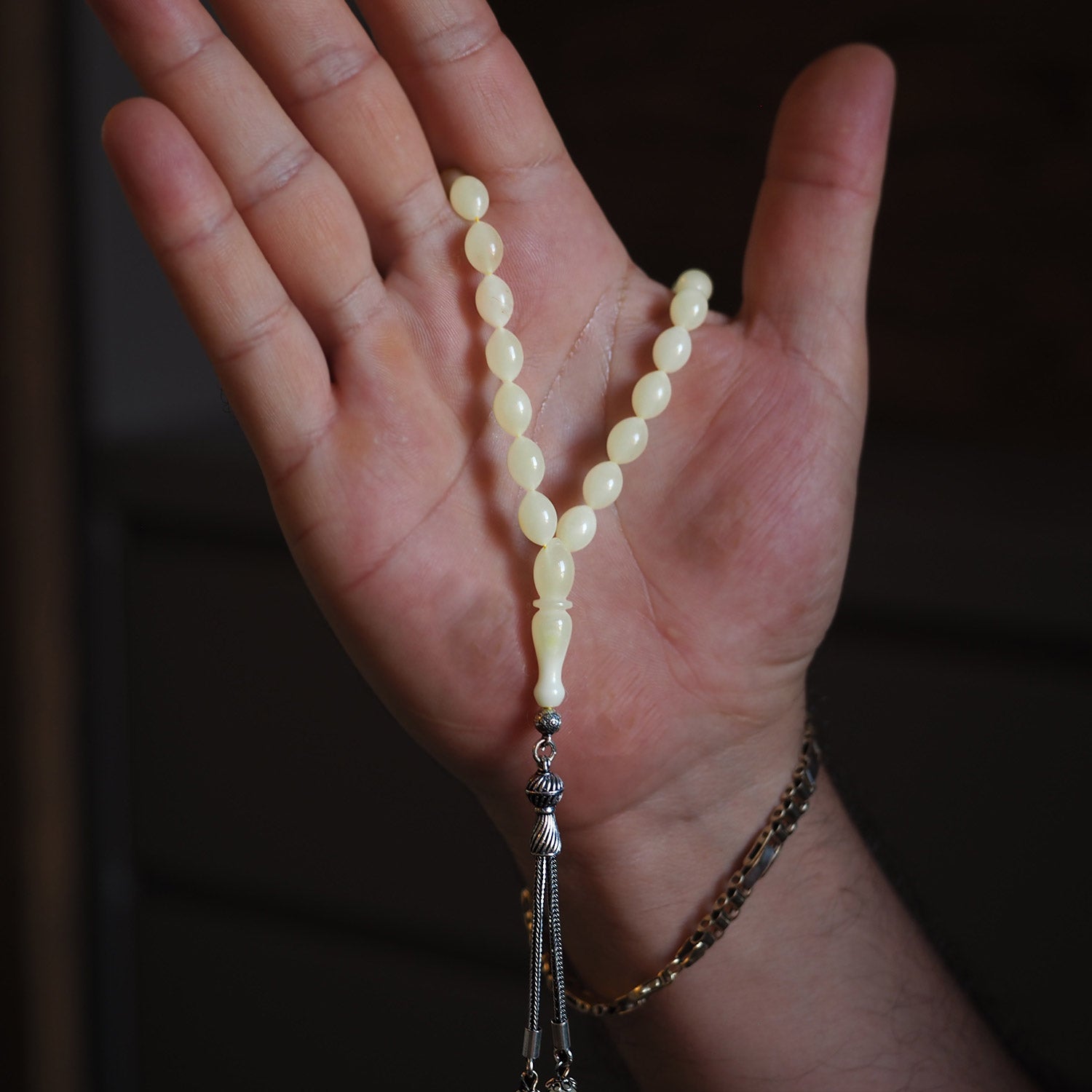 Damla Kehribar Tesbih - Arpa Kesim (Gümüş İmame Nakkaş İşçilik) – WATD036