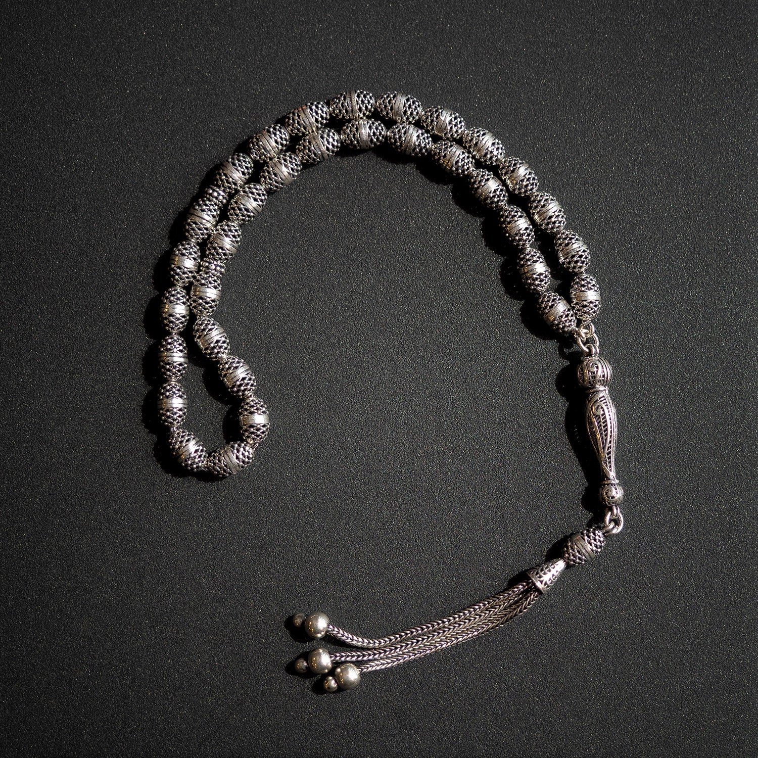 - El işçiliğiyle hazırlanmış bu özel tasarım gümüş tesbih, zarif dokusu ve klasik formuyla şıklığı temsil ediyor. 925 ayar gümüşten üretilmiş olup, günlük kullanım ve özel hediye seçenekleri için idealdir.