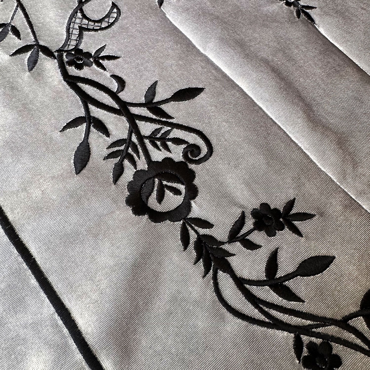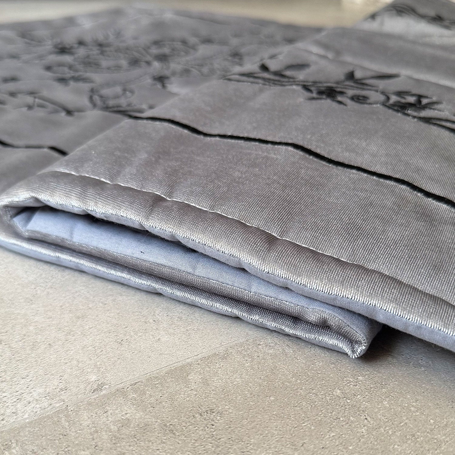 Gri Renk İpek Kadife Kumaş Seccade (Siyah Renk Maraş İşi Nakış) - WAS016