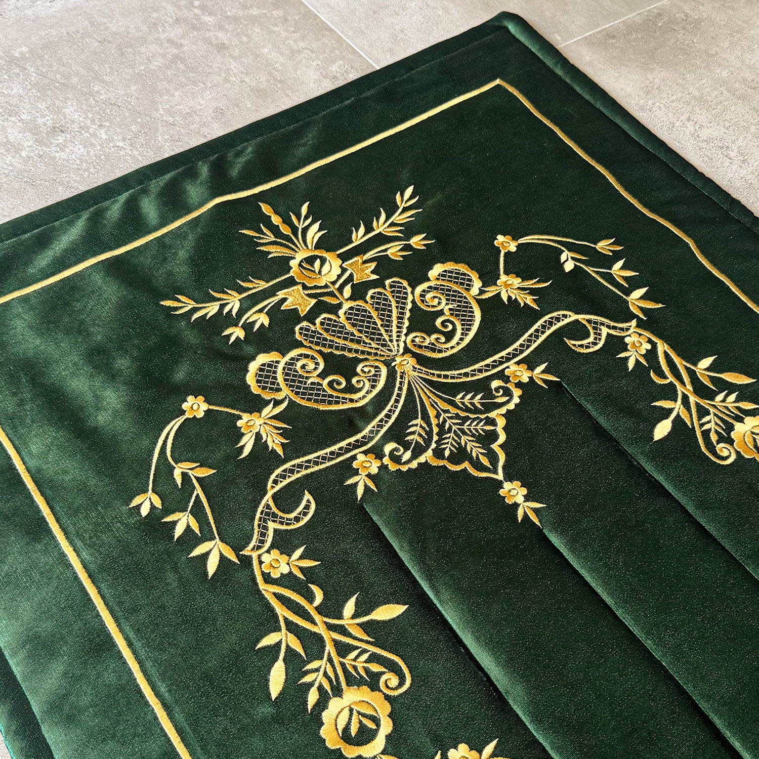 Yeşil Renk İpek Kadife Kumaş Seccade (Altın Renk Maraş İşi Nakış) - WAS017