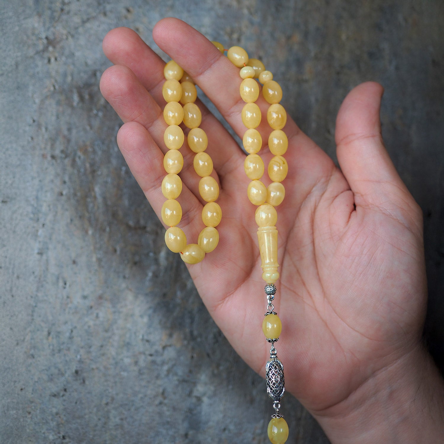 Gümüş İşlemeli Damla Kehribar Tesbih - WATD105