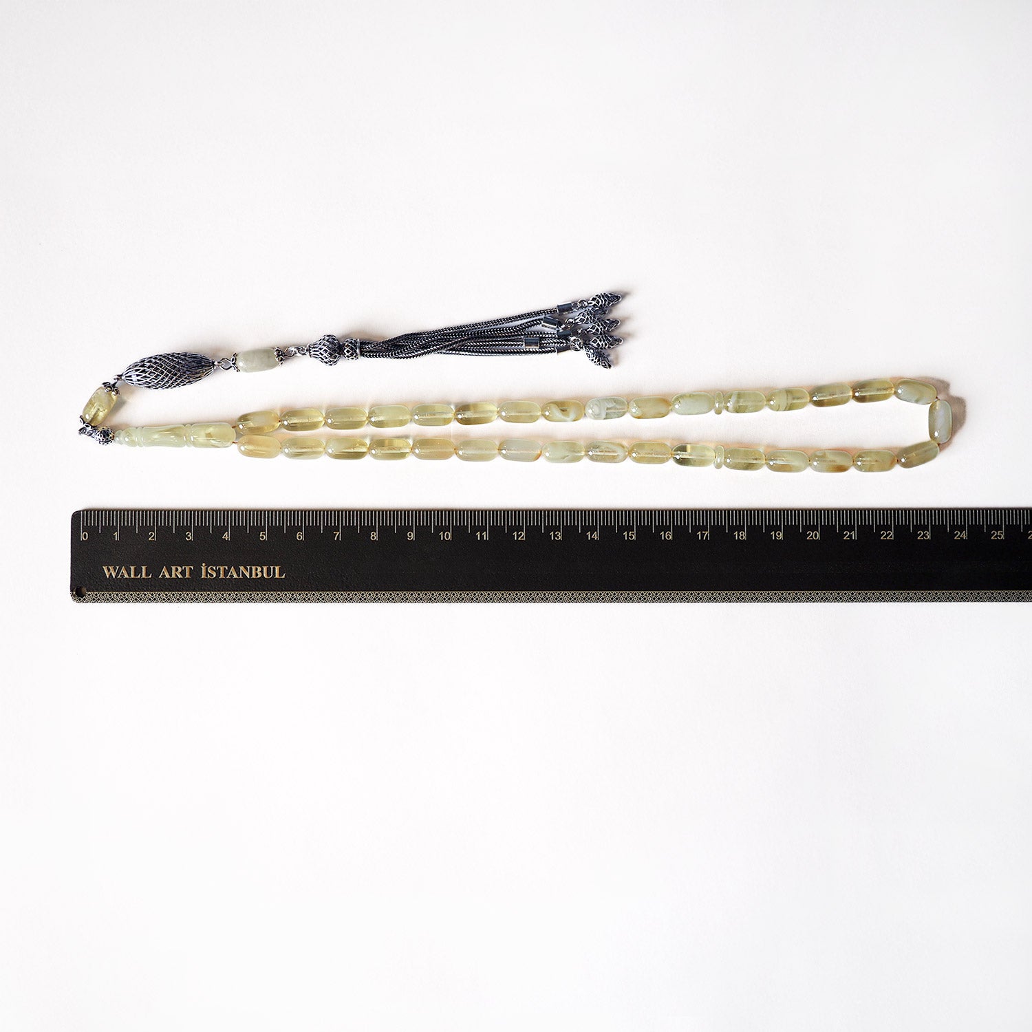 - Tesbihlerimizde yer alan imame ve püskül detayları, elde üretim ve stok durumuna bağlı olarak değişiklik gösterebilir. Bu farklılıklar ürünün şıklığını ve kalitesini etkilemez.