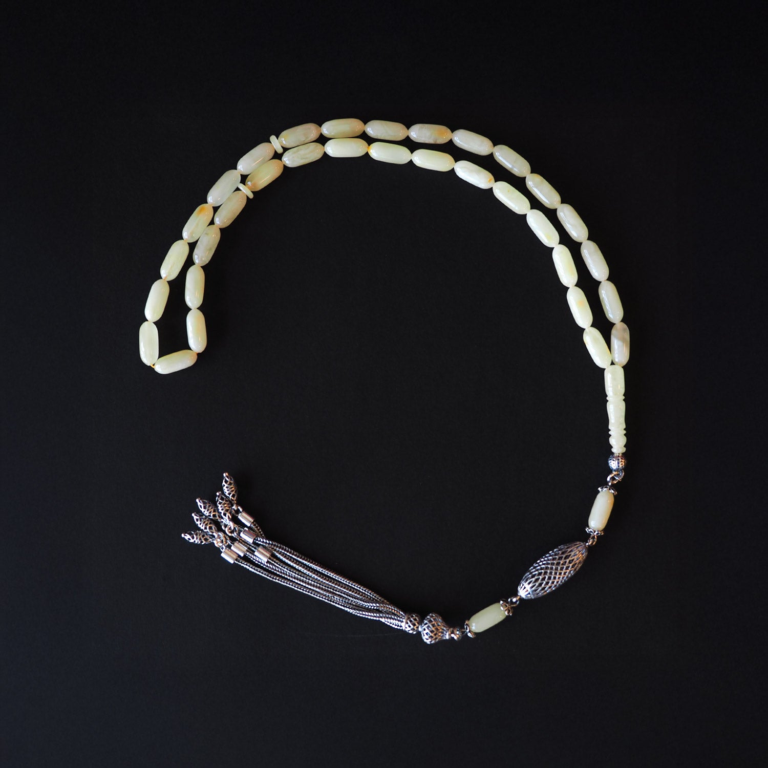 Gümüş İşlemeli Damla Kehribar Tesbih - WATD107