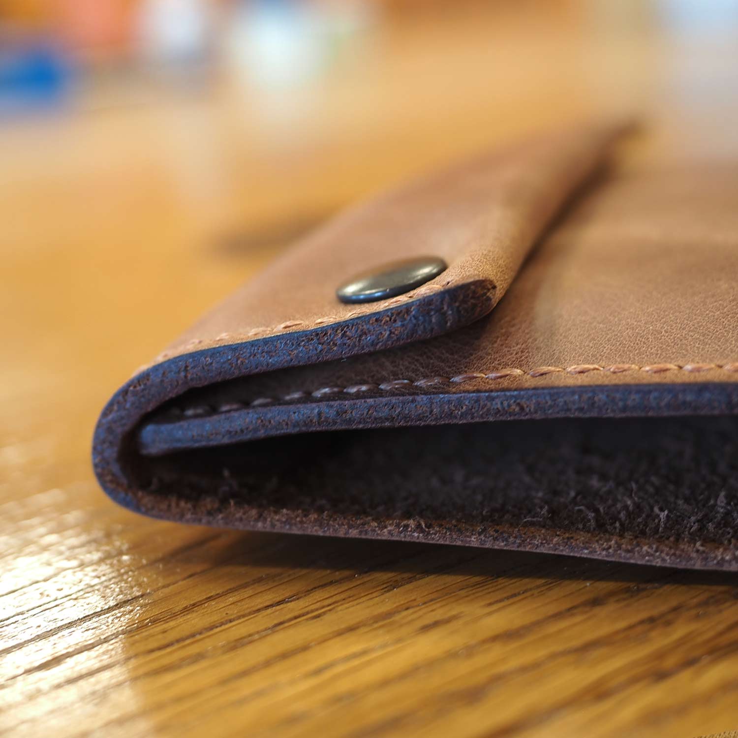 Sarma sigara kullananlar için pratik ve düzenli bir kullanım sunan deri tütün çantası. Üç katlamalı (trifold) tasarımı ve kıvrılan cep kulakları sayesinde içindekiler dökülmeden güvenle taşınır.