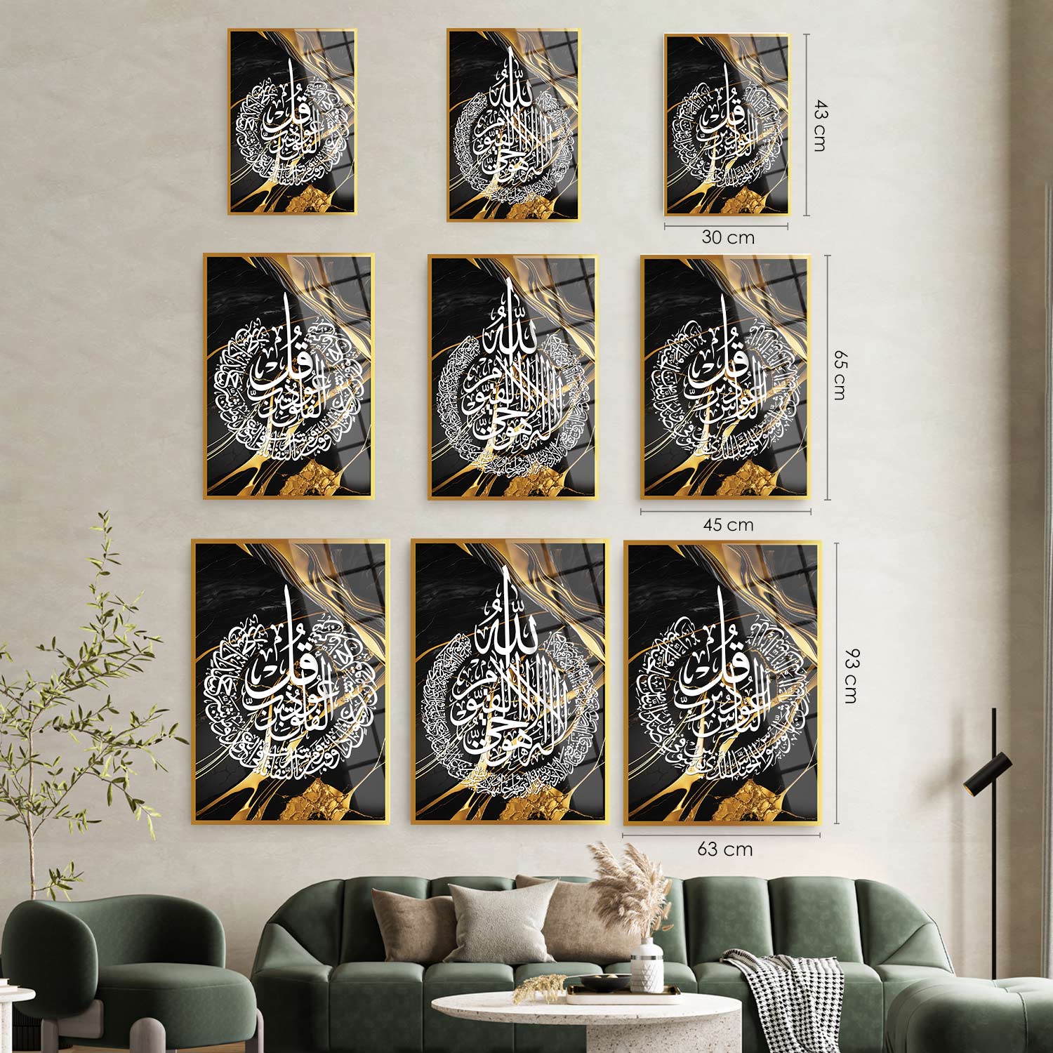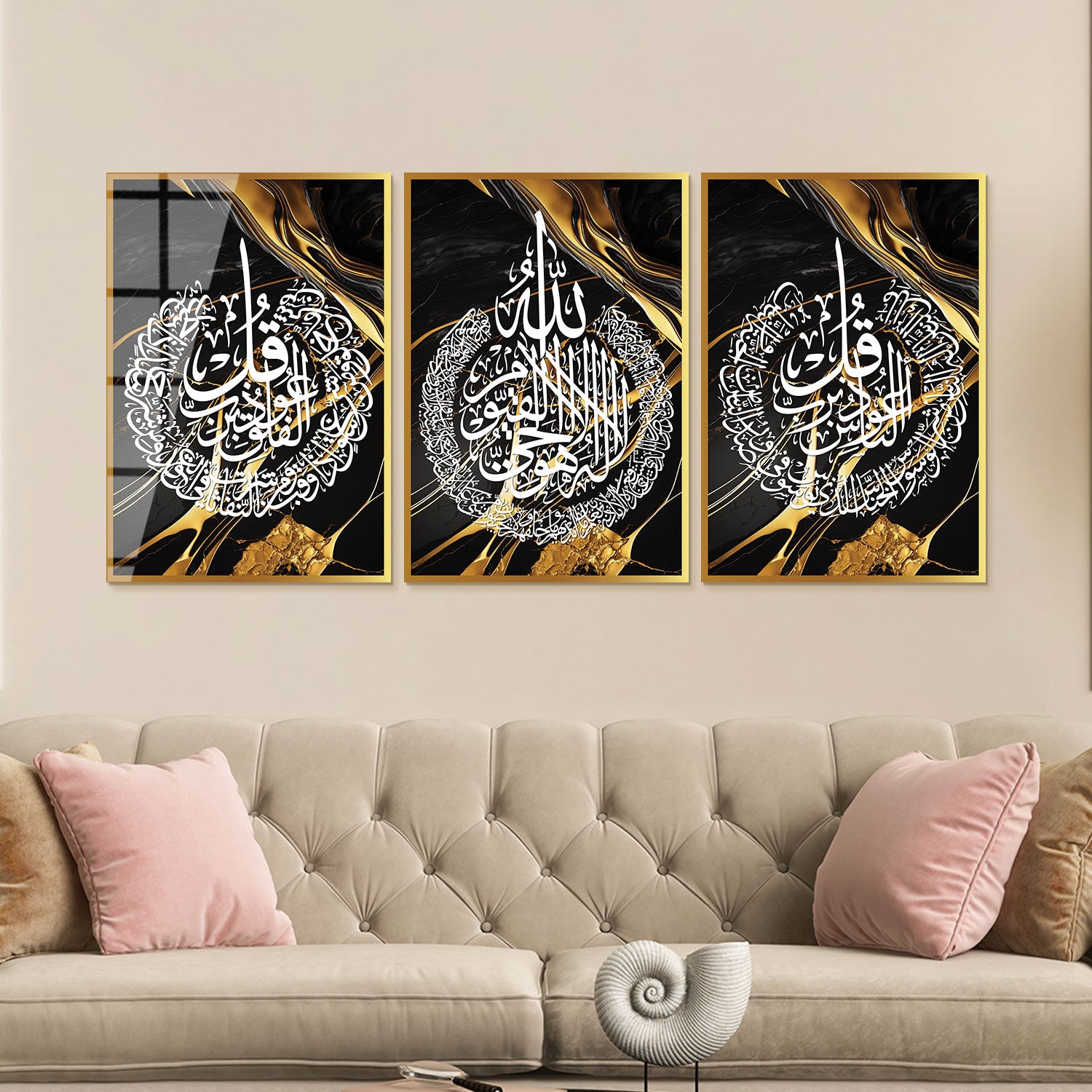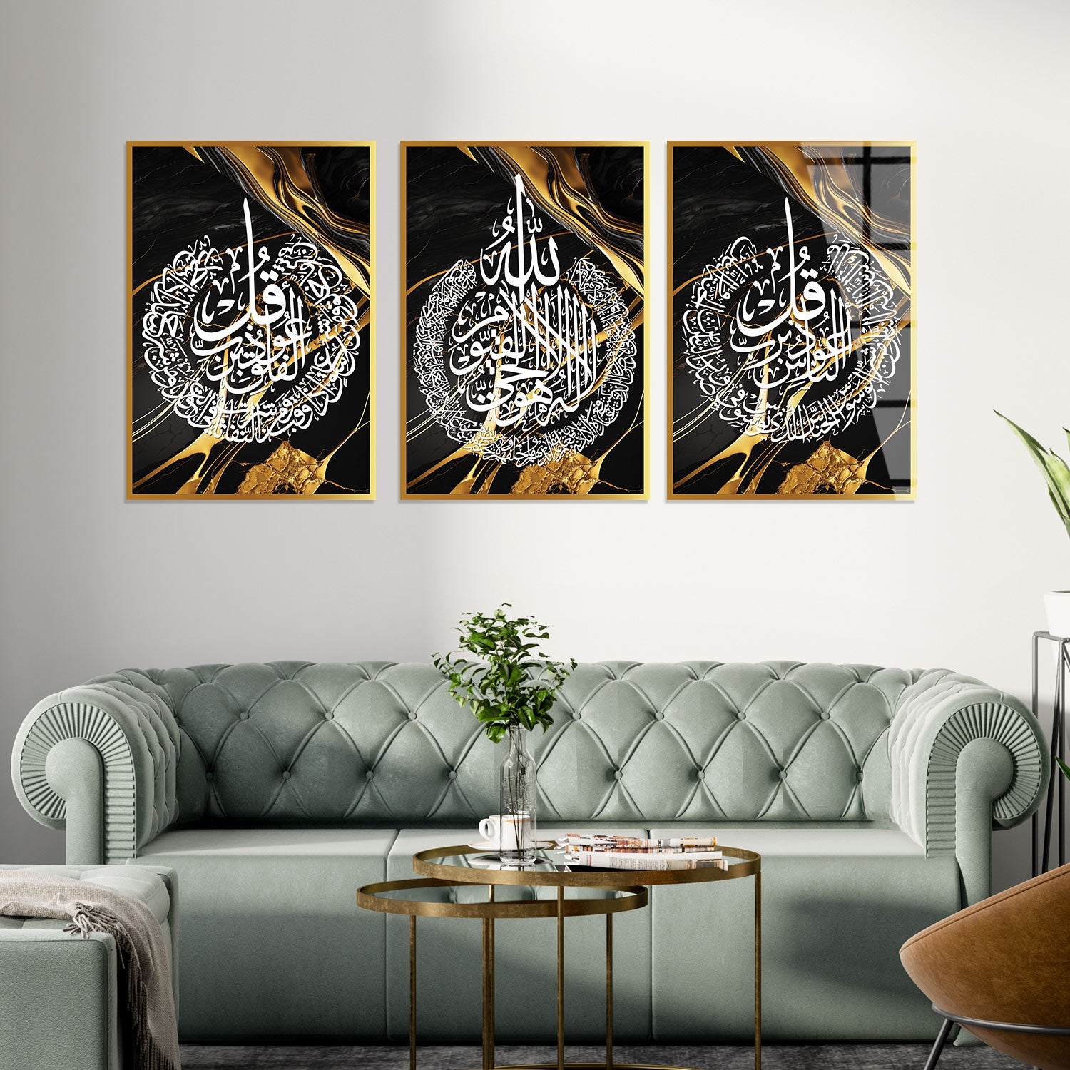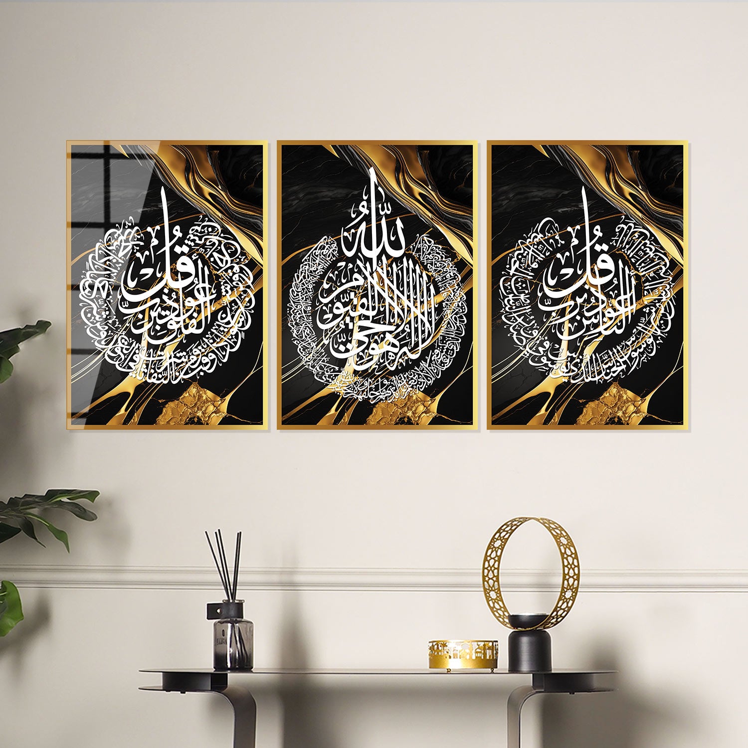 Ayetel Kürsi, Felak ve Nas Suresi Cam Duvar Tablo Seti (3 Parça)- WTC038