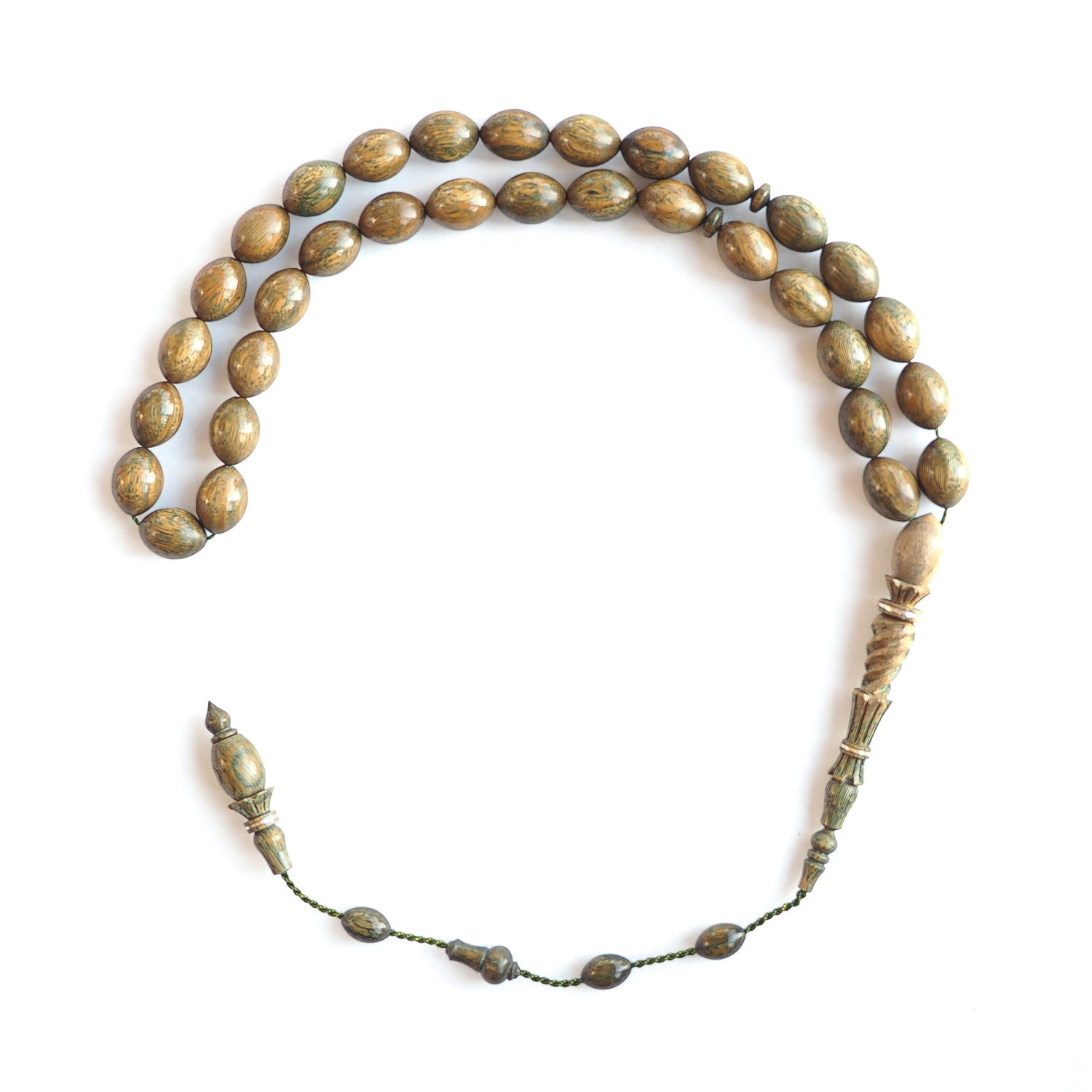 Yeşil Pelesenk Ağacı İmame ve Hitame Oyma Gümüş Sargı İşçilikli El Cilalı Tesbih - WATD231 ile benzer ürünler